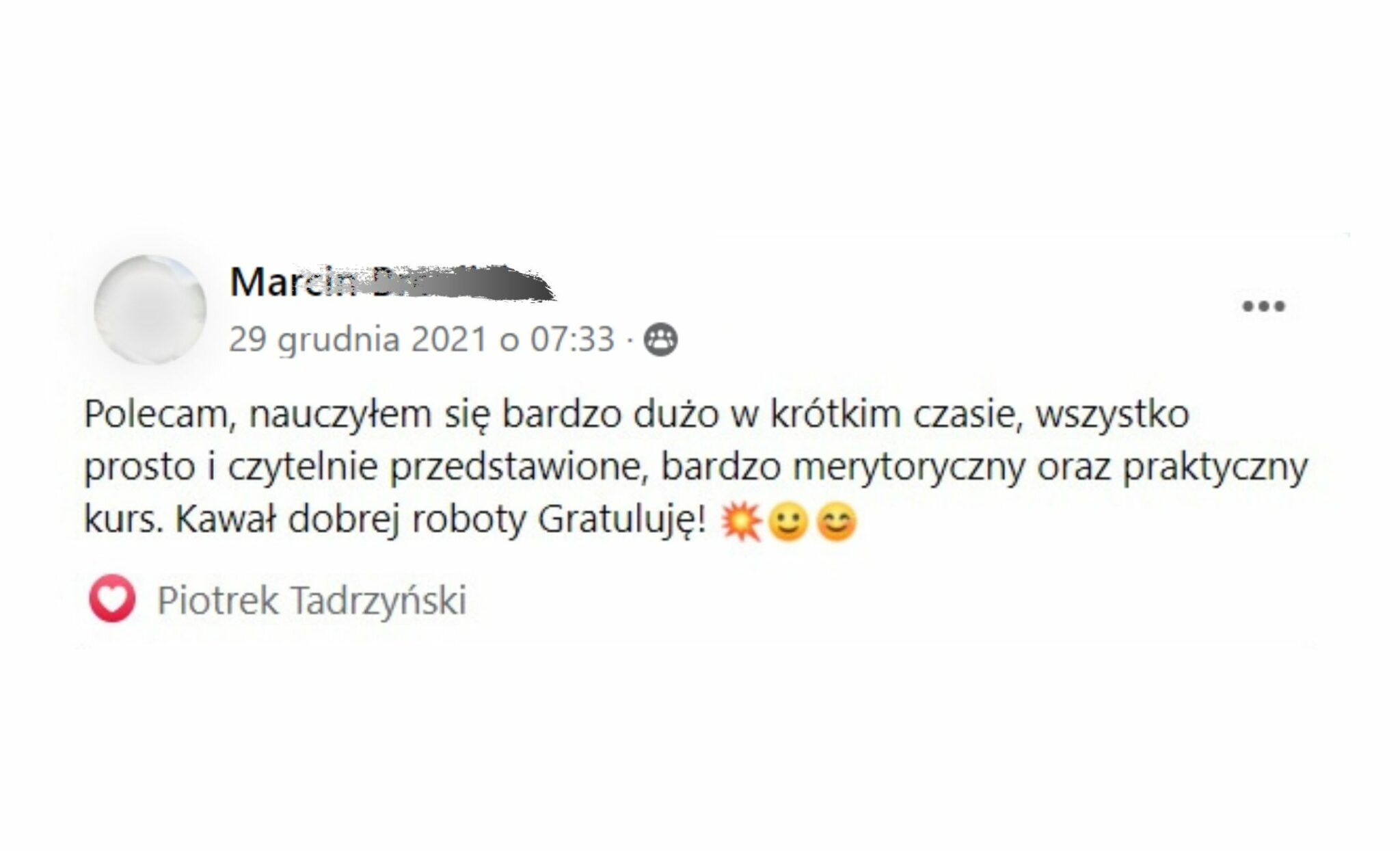 Po wykupieniu KURSU otrzymasz unikatowy dostęp do GRUPY NA FB, gdzie będziesz mógł pokazać swoje postępy a ja pomogę ci szlifować twoją GRĘ!